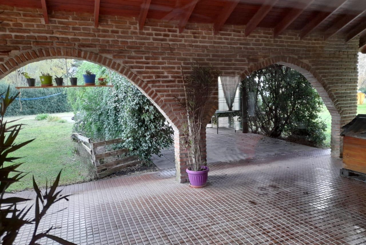 En el exterior se encuentra un quincho con capacidad para aproximadamente 40 personas, equipado con parrilla. Actualmente una parte del quincho se utiliza como guardado para vehículo. Este espacio también dispone de: